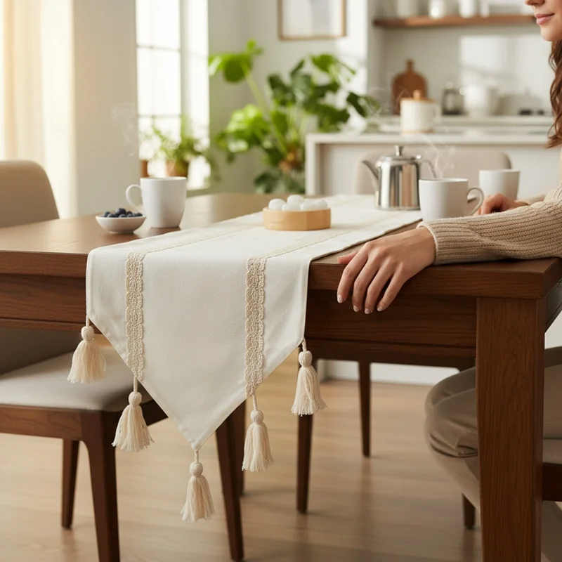 رانر طرح نیلو از پارچه کتان داک با کیفیت بالا دوخته شده و دارای الیاف ضد لک و مقاوم به حرارت است. طراحی آن ترکیبی از اصالت و سادگی بوده و بهراحتی با انواع دکوراسیون منزل هماهنگ میشود. این رانر برای استفاده در میز پذیرایی، میز ناهارخوری و حتی چیدمان خاص مهمانیها ایدهآل است.
