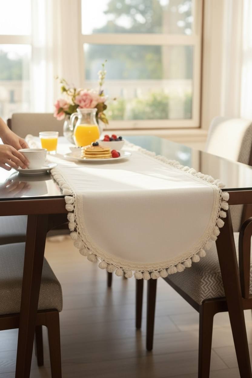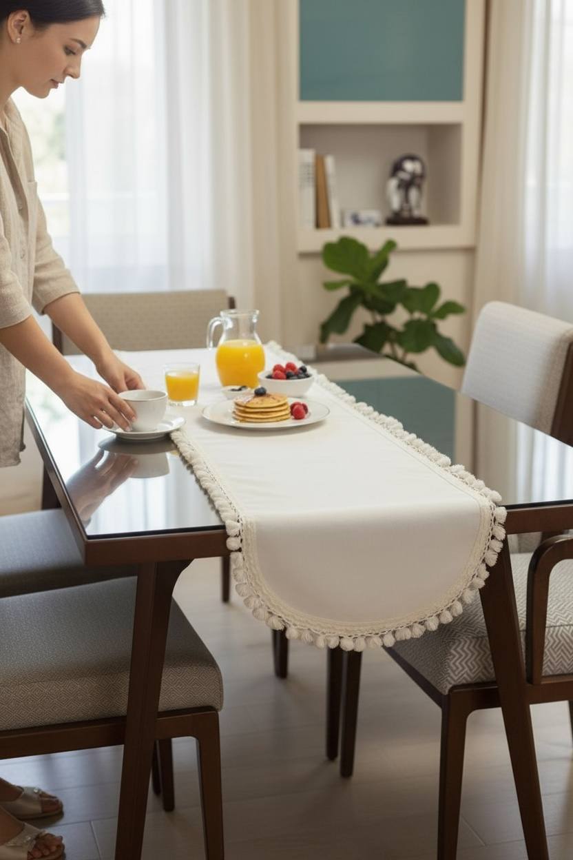 صبحهای روشن و میزهای مرتب؛ «نسیم» با لبههای گرد و منگولههای شیری، نرمی و وقار مینیمال را به هر فضا میآورد. مناسب میز ناهارخوری، جلومبلی و کنسول.ویژگیها در یک نگاه• پارچه: کتان ترک با کوتینگ ضدآب (بافت طبیعی، بدون برقِ پلاستیکی)• طراحی: لبهی گرد + منگولهدوزی ظریف به رنگ شیری• دوخت تمیزِ کارگاهی لیلاک، قابل سفارش در ابعاد دلخواه• لکهگریز و تمیزشونده سریع (پاککردن با دستمال نمدار)• مناسب فضاهای مدرن، مینیمال و بوهو؛ قابل استفاده روزمره و پذیرایی با ابعا قابل شخصیسازی) .کاربردهامیز ناهارخوری | جلومبلی | کنسول | میز صبحانه و میانوعده--- مراقبت و نگهداری• پاککردن روزانه با دستمال مرطوب؛ شستوشو ملایم ۳۰°C• بدون سفیدکننده؛ خشک در سایه؛ اتوی ملایم از پشت با پارچه محافظ• تماس مستقیم ظروف بسیار داغ با پارچه توصیه نمیشودجزییات سفارش• زمان آمادهسازی دوخت سفارشی: ۳–۵ روز کاری• امکان ستکردن با زیربشقابی، دستمال سفره و کاور باکس دستما