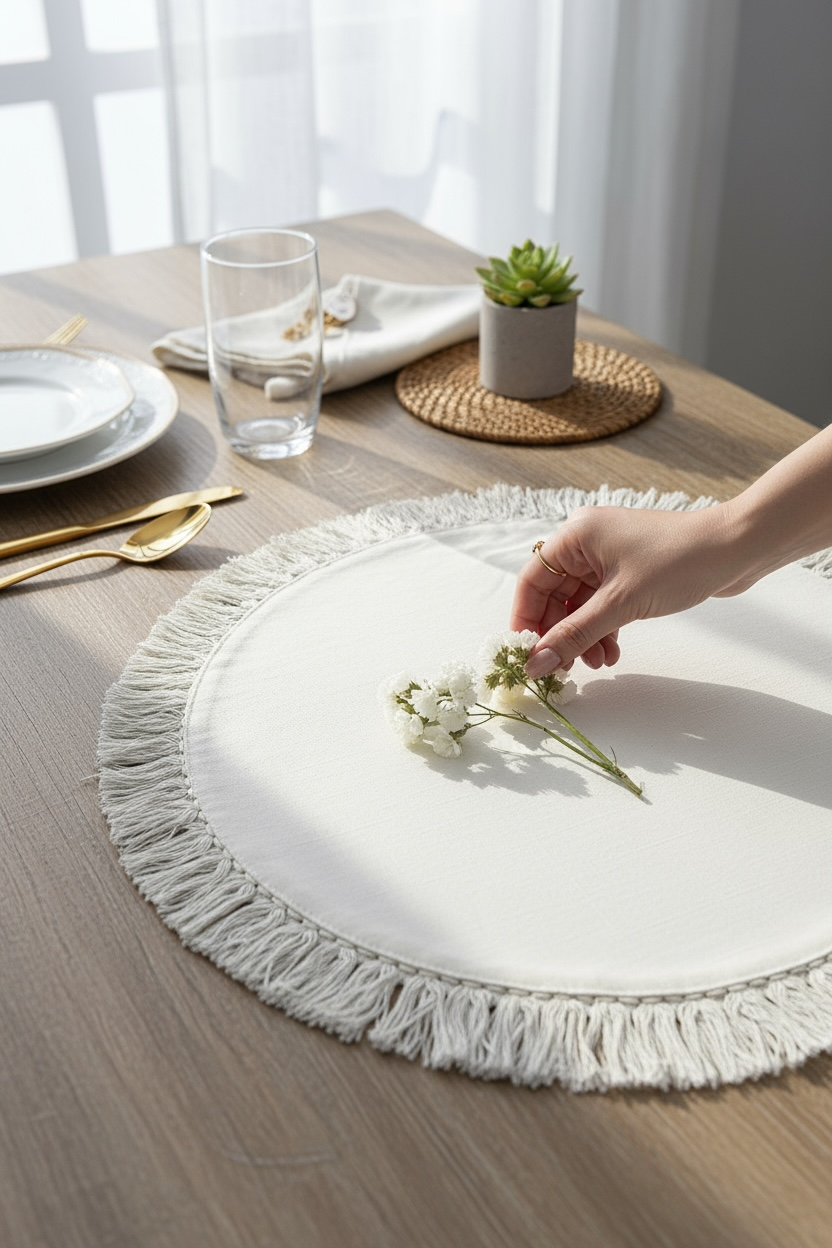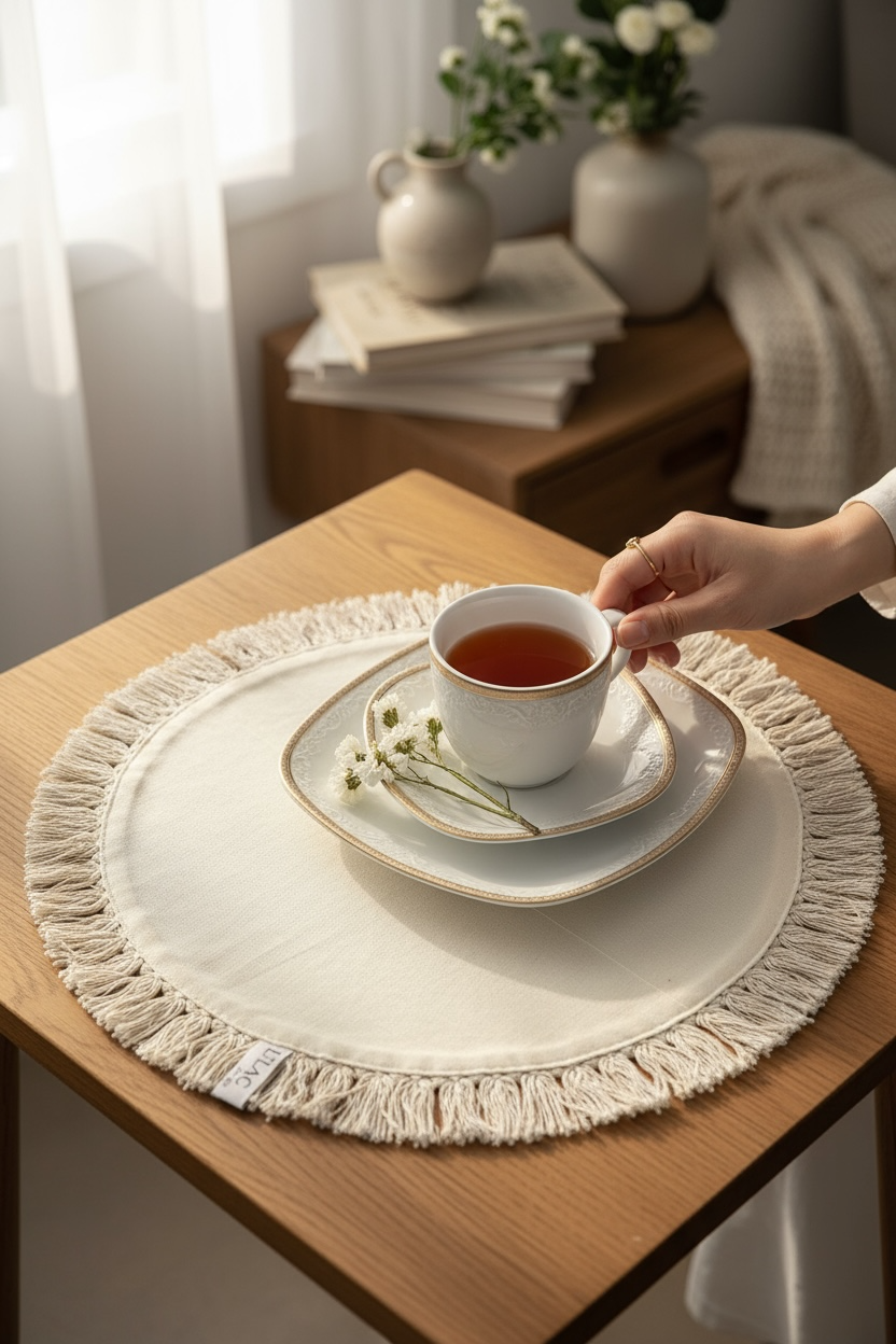 رومیزی گرد دورریش از کتان ضد آب اکیفیت دوخته شده؛ پارچهای طبیعی، خوشفرم و بادوام که روی میز بسیار تمیز و شکیل دیده میشود.لبههای دورریشِ منظم، این مدل را به انتخابی خاص و دنج برای چیدمان میز صبحانه، عصرانه یا دورهمیهای دوستانه تبدیل کرده است، پرز نمیدهد و بعد از شستوشو ظاهر طبیعی و زیبای خودش را حفظ میکند.این رومیزی با سبک مینیمال و رنگ خنثی، بهراحتی با سایر اکسسوریهای لیلاک ست میشود و میز شما را گرمتر و چشمنوازتر میکند.