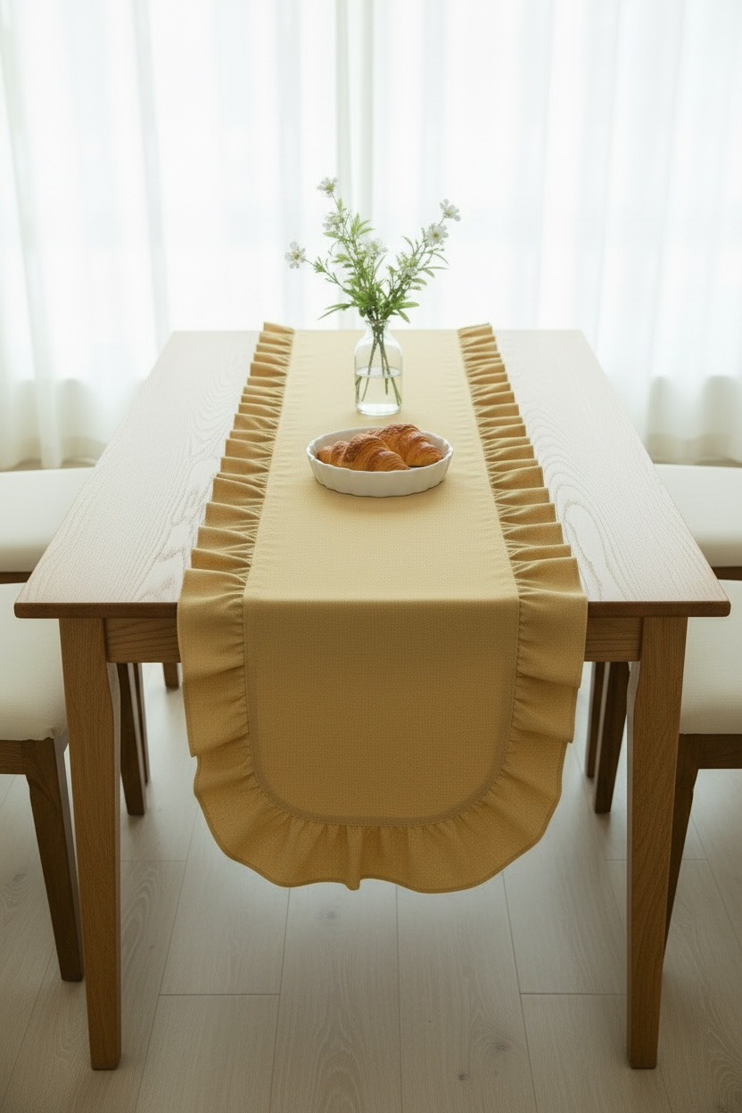 این رانر از پارچه لینن با کیفیت دوخته شده و بافت طبیعی آن جلوهای بسیار شیک و مینیمال به میز میدهد. رنگ زردِ گرم و لطیف، حس آفتاب و انرژی را وارد فضای خانه میکند و برای استفاده روزمره یا چیدمانهای مهمانی کاملاً مناسب است. قابل سفارش در ابعاد دلخواه و مناسب انواع میز غذاخوری، کنسول و میز عسلی