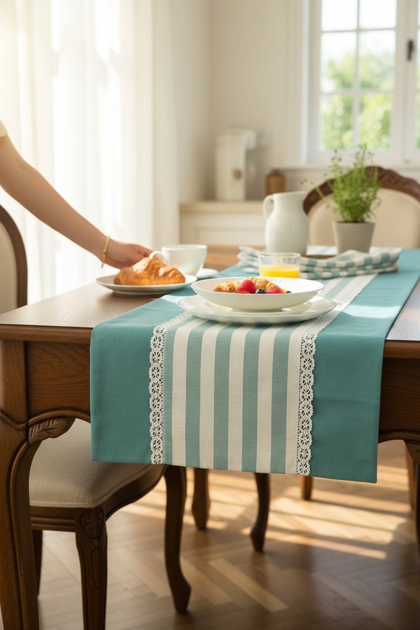 🔹 رانر سبزینه، با طراحی دو رو، انتخابی ایدهآل برای چیدمان میزهای شماست. یک سمت آن دارای طرح خاص و مدرن بوده و سمت دیگر با طرحی ساده و مینیمال، امکان تنوع در دکوراسیون را برای شما فراهم میکند.🔹 از الیاف باکیفیت و مقاوم در برابر لک و حرارت تولید شده، که آن را برای استفاده روزمره و مهمانیها ایدهآل میسازد.🔹 قابل استفاده برای میزهای ناهارخوری، میز پذیرایی و میزهای جلو مبلی، با امکان ست شدن با سایر اکسسوریهای خانه.