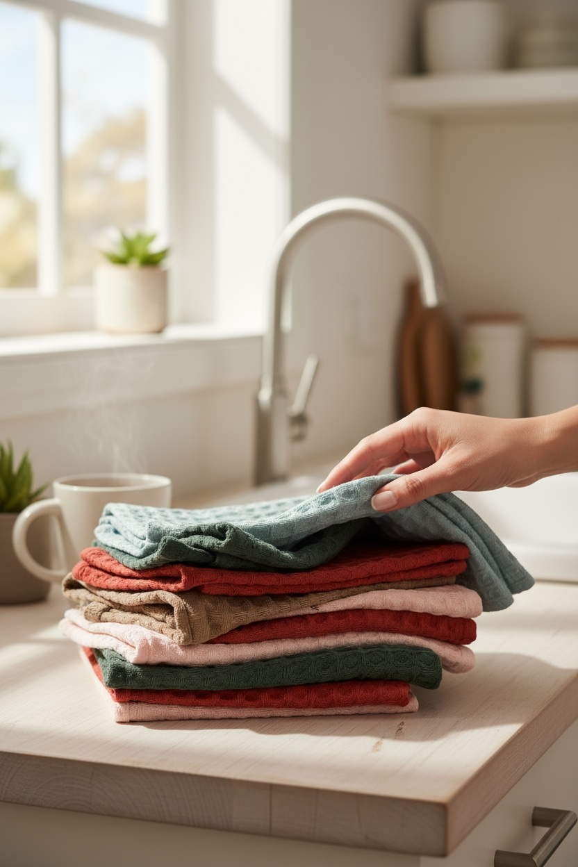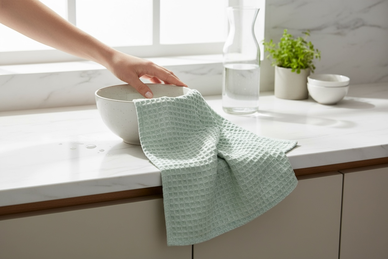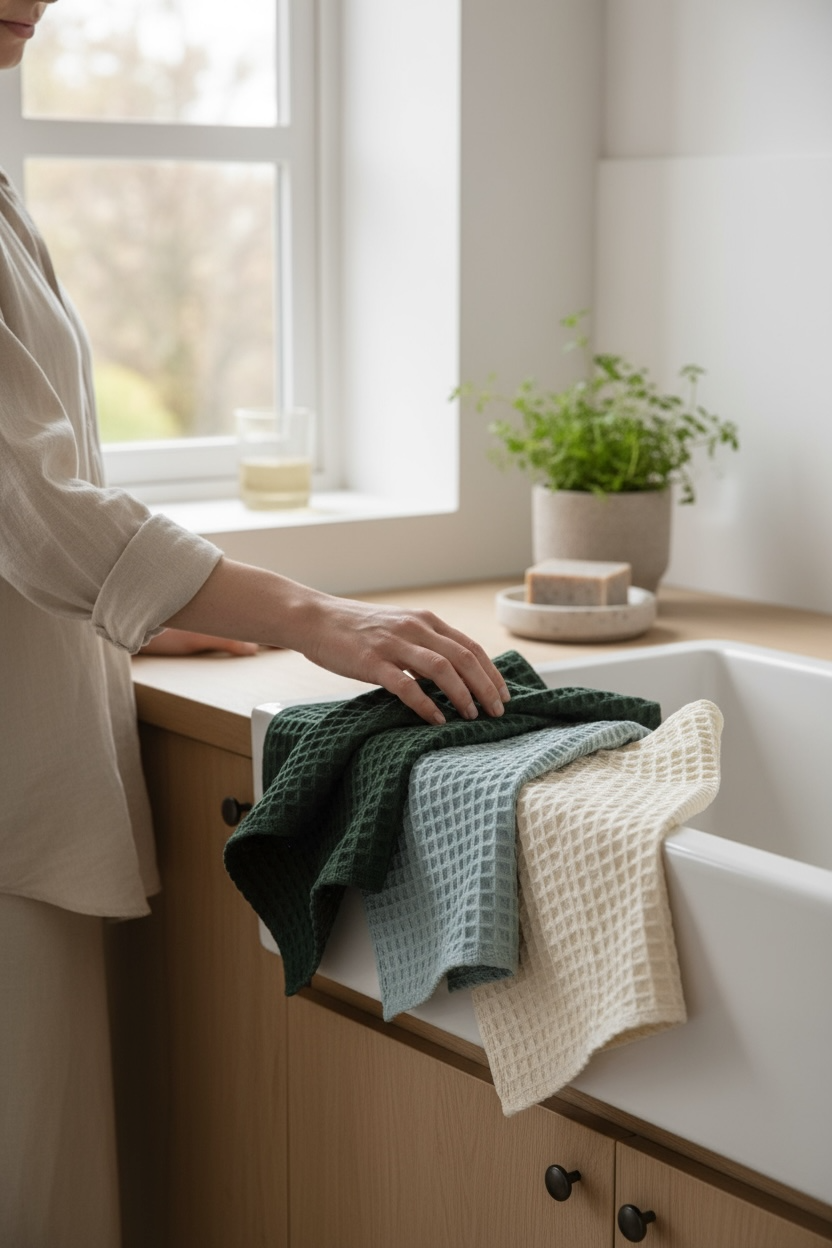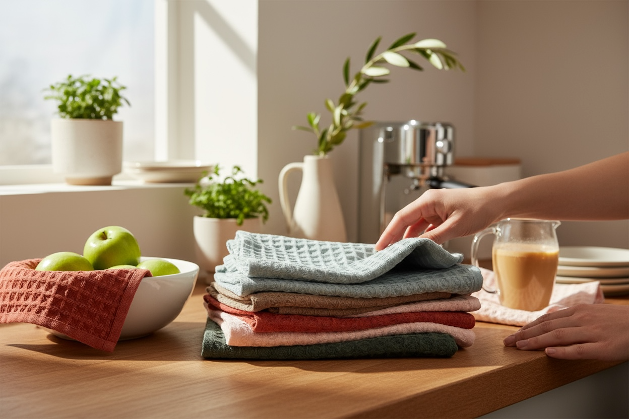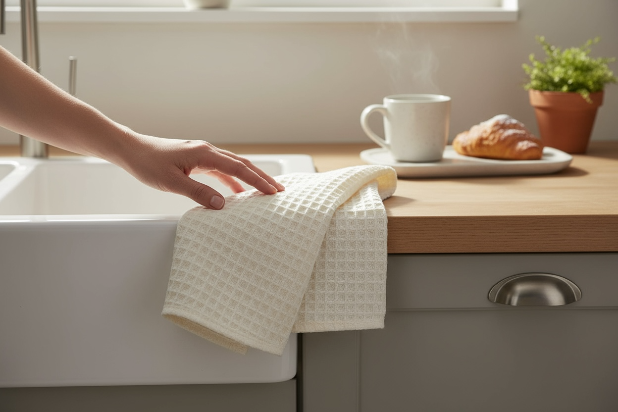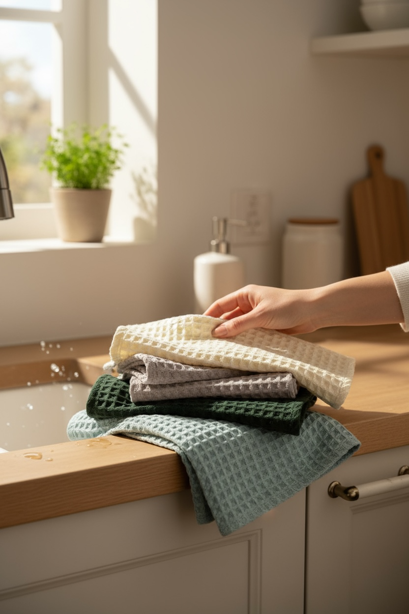 دستمال وافلی بافت درشت لیلاک، از پنبه خالص تولید شده و بهدلیل ساختار لانهزنبوری، قدرت آبگیری بسیار بالایی دارد. این دستمال برای استفاده روزمره در آشپزخانه فوقالعاده کاربردی است و بدون پرزدهی، رطوبت را بهخوبی جذب میکند.کاربردها:• خشککردن دست• خشککردن ظروف• آبگیری میوه و سبزیجات• مناسب کنار سینک و استفاده روزمرهاین دستمال با اندازه ۴۵×۴۵ سانتیمتر طراح