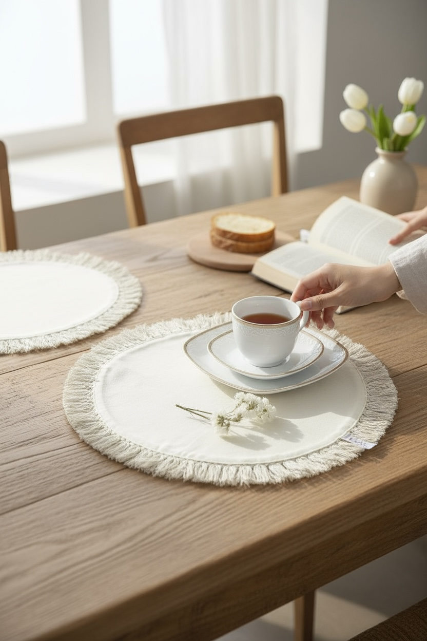 زیربشقابی گرد دورریش از کتان ضدآب باکیفیت دوخته شده؛ پارچهای طبیعی، خوشفرم و بادوام که روی میز بسیار تمیز و شکیل دیده میشود.لبههای دورریشِ منظم، این مدل را به انتخابی خاص و دنج برای چیدمان میز صبحانه، عصرانه یا دورهمیهای دوستانه تبدیل کرده است، پرز نمیدهد و بعد از شستوشو ظاهر طبیعی و زیبای خودش را حفظ میکند.این زیربشقابی با سبک مینیمال و رنگ خنثی، بهراحتی با سایر اکسسوریهای لیلاک ست میشود و میز شما را گرمتر و چشمنوازتر میکند.