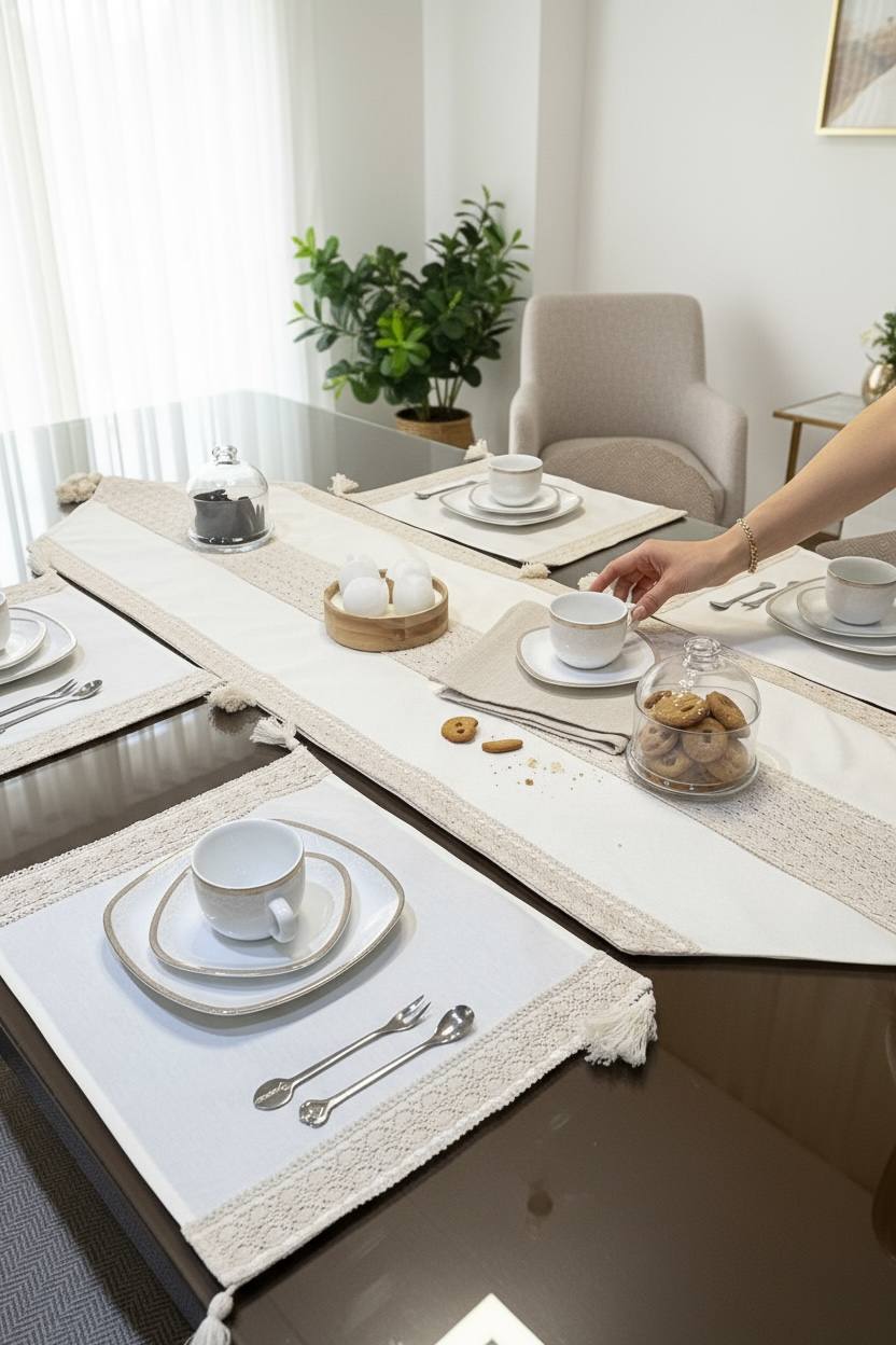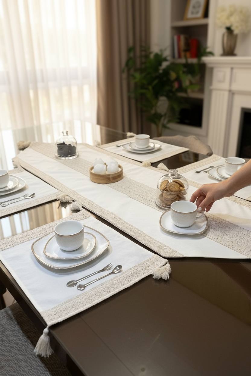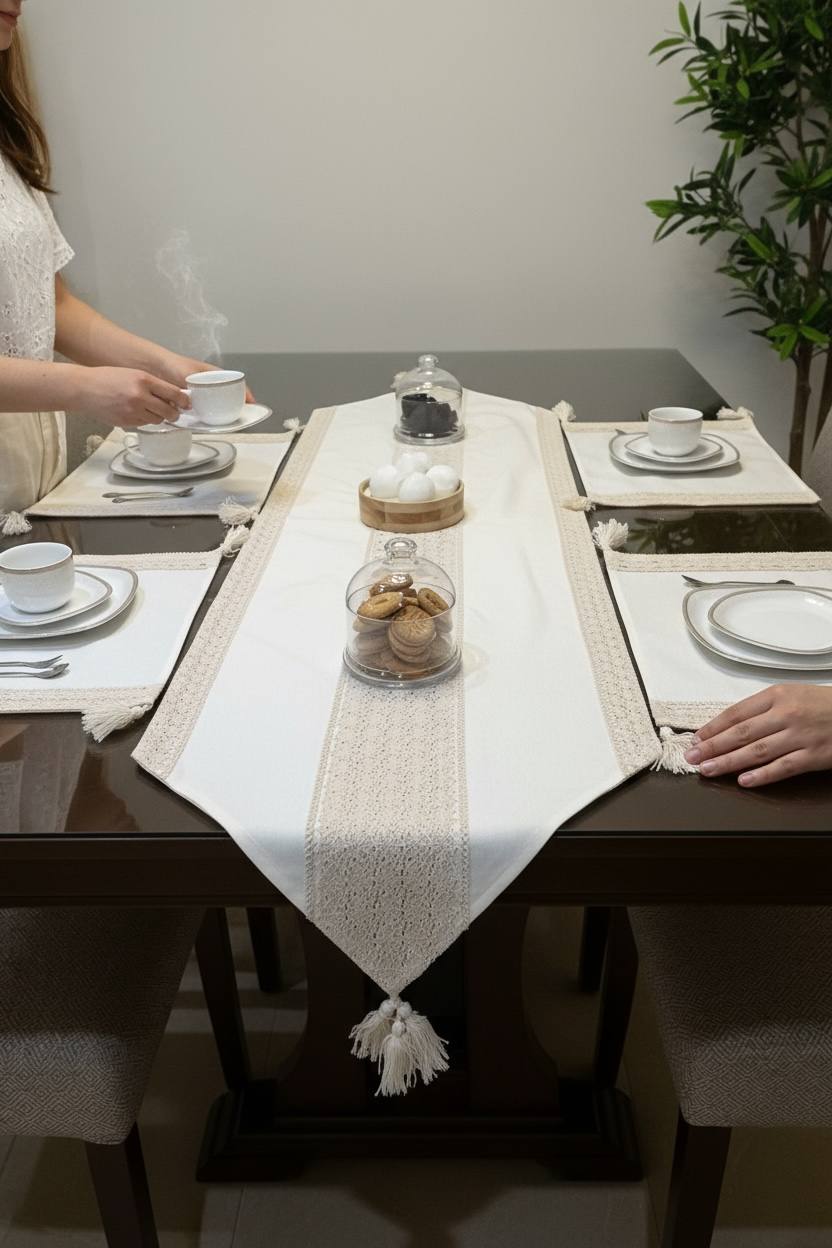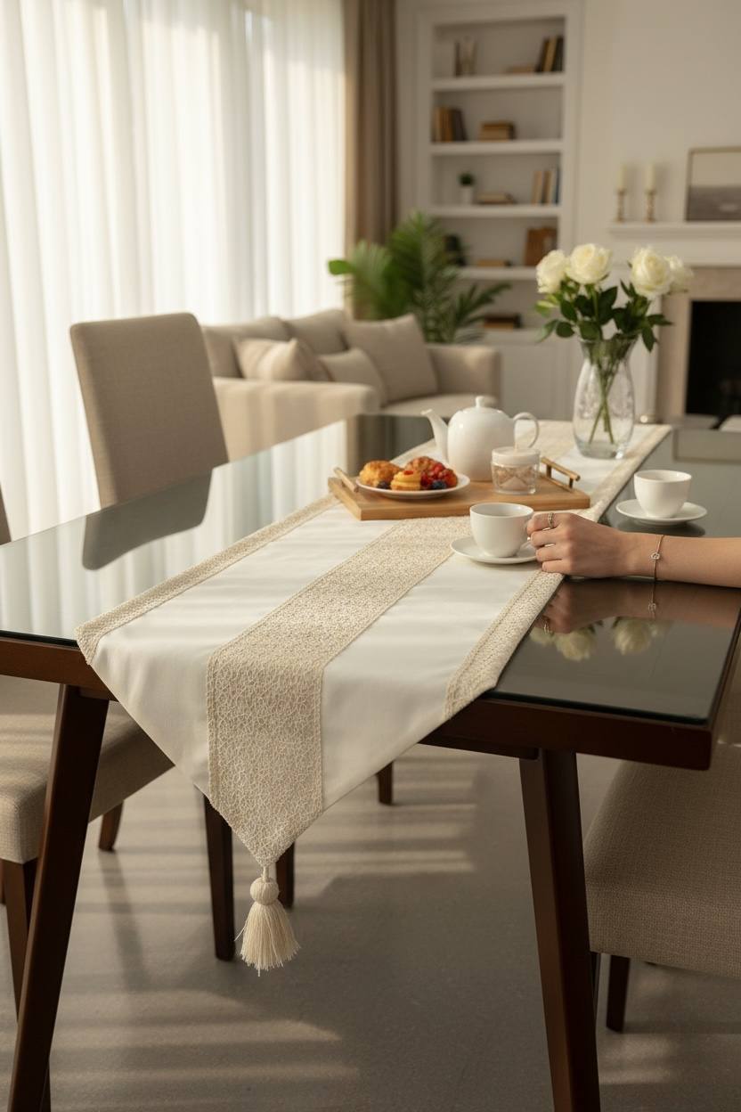 “رانر طرح خوشه، انتخابی ایدهآل برای فضای غذاخوری شما. این رانر با طراحی زیبا و مینیمال خود، حس طبیعت را به خانه شما میآورد. پارچه مقاوم در برابر آب و حرارت، این محصول را به گزینهای کاربردی و زیبا برای دکوراسیون میزهای شما تبدیل کرده است.”