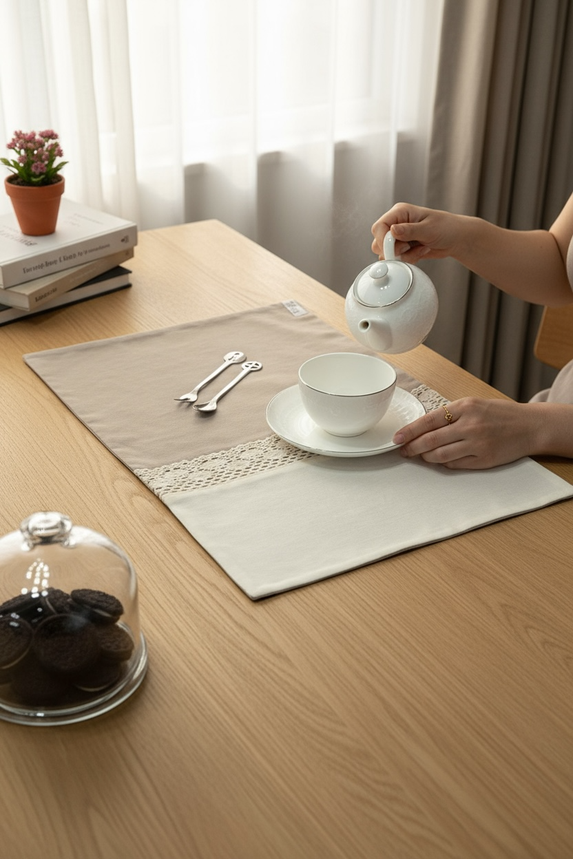 زیر بشقابی طرح دیا از کتان ضدآب با کیفیت بالا دوخته شده؛ پارچهای بادوام، خوشفرم و مقاوم در برابر رطوبت که میز شما را مرتب و خاص نشان میدهد.طراحی مینیمال همراه با نوار دانتل ظریف، این مدل را به یکی از پرفروشترین انتخابها برای چیدمان میز صبحانه، عصرانه یا مهمانی تبدیل کرده است.این زیربشقابی بهراحتی در ماشین لباسشویی شسته میشود و بافت کتان بعد از شستوشو زیبایی و استحکام خودش را حفظ میکند.ستکردن آن با دستمال سفره و رانرهای لیلاک، ظاهر میز را یکدست، گرم و حرفهای میکند